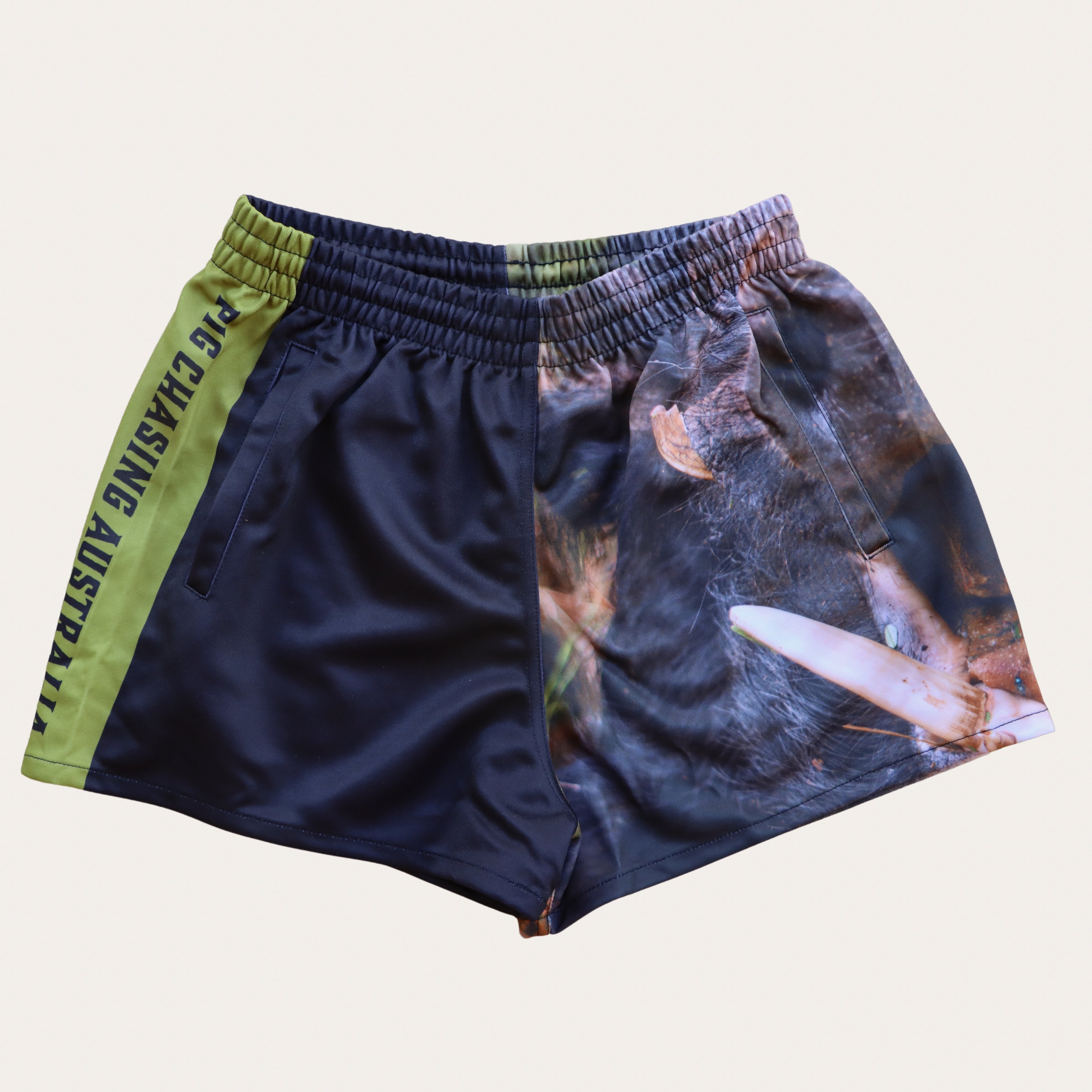 Take on any adventure with the Hooky Boar Footy Shorts. Made with high quality materials, these shorts are built to last through rugged terrain. Plus, with convenient pockets, you can easily store all your essentials on the go. Don't let anything hold you back, grab a pair of Hooky Boar Footy Shorts and conquer the wild today!