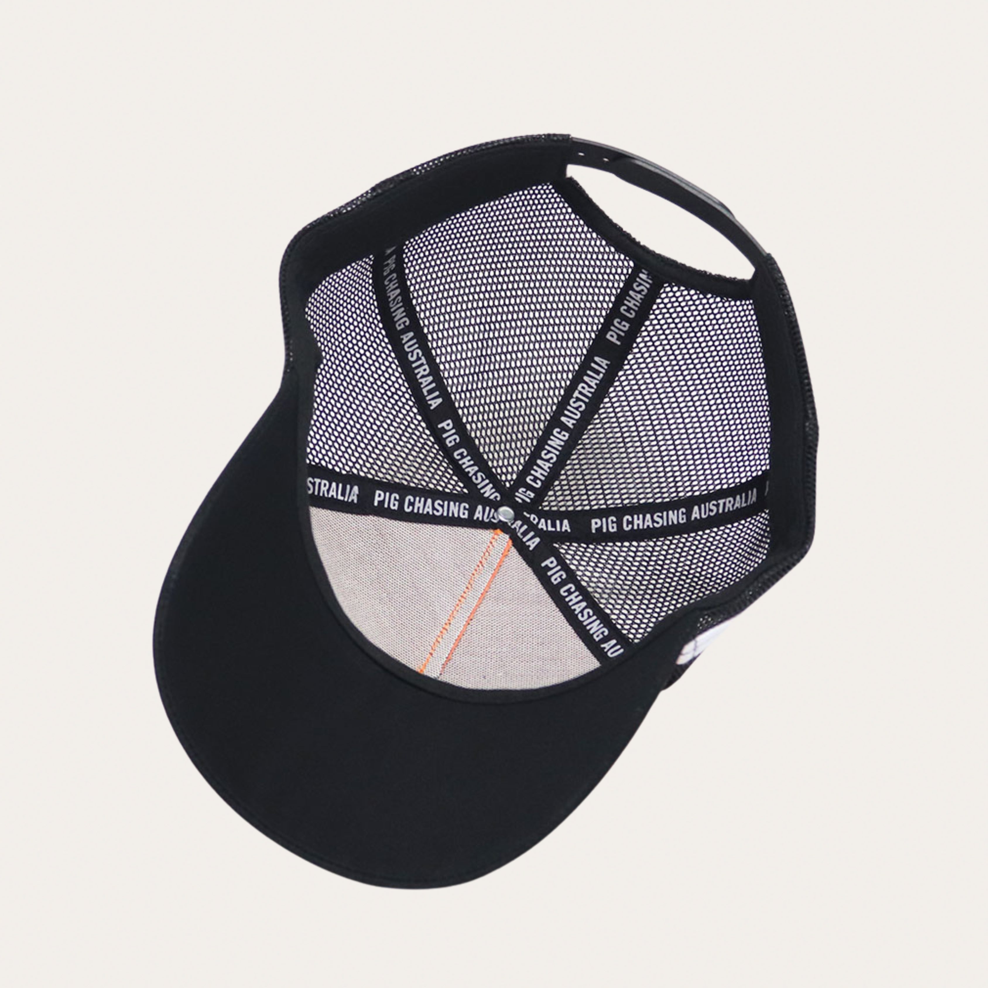 Elevate your style with our Peach/Black Cursive Trucker Cap. This fun and modern accessory will add a pop of color to any outfit. Stay cool and stylish with its bright design. Upgrade your wardrobe today!