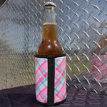 Pink/Green Plaid Stubby Cooler