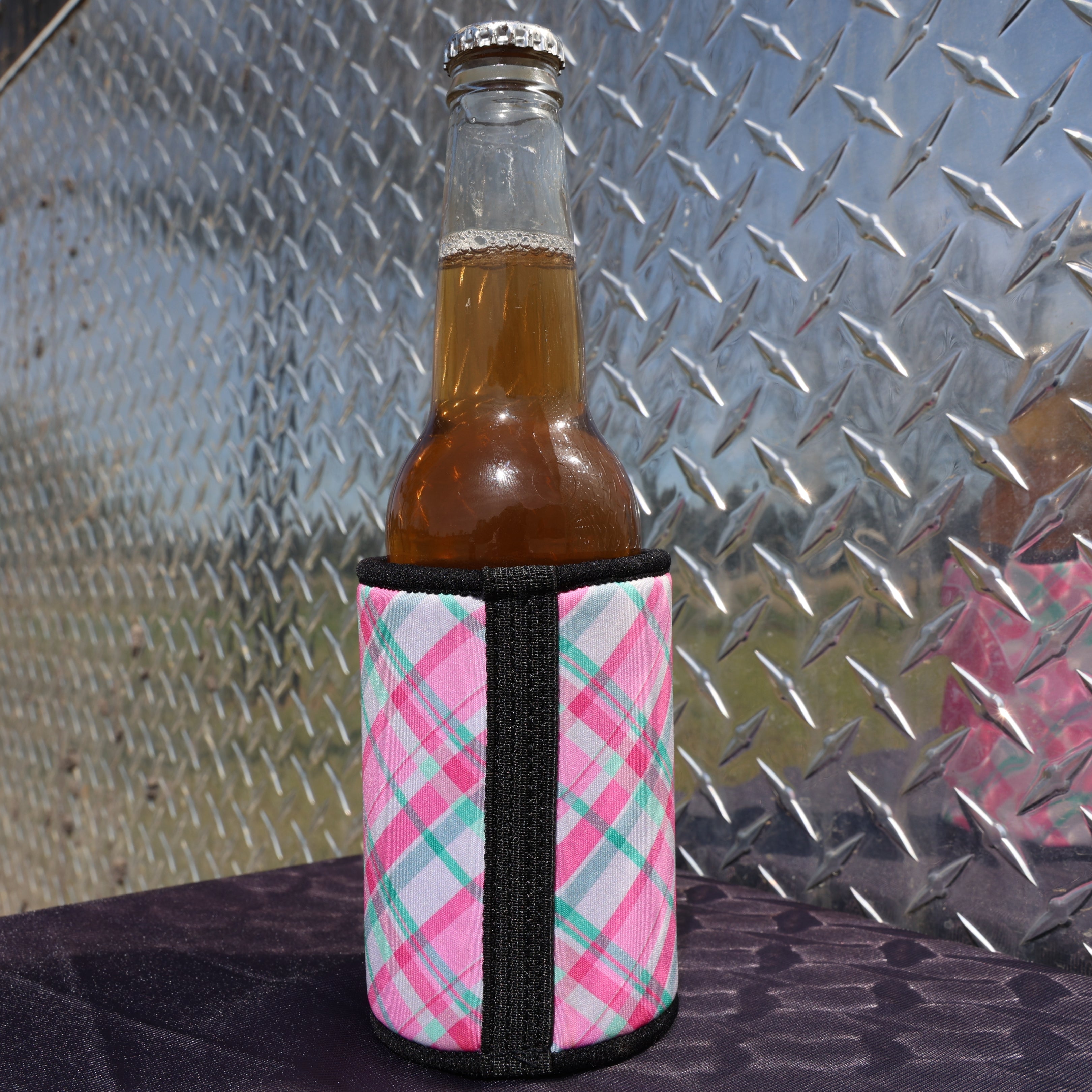 Introducing the Pink/Green Plaid Stubby Cooler, the must-have accessory for a perfect summer day! Keep your beer cold and refreshing with this stylish cooler. Relax and enjoy your drink without worrying about it losing its chill.