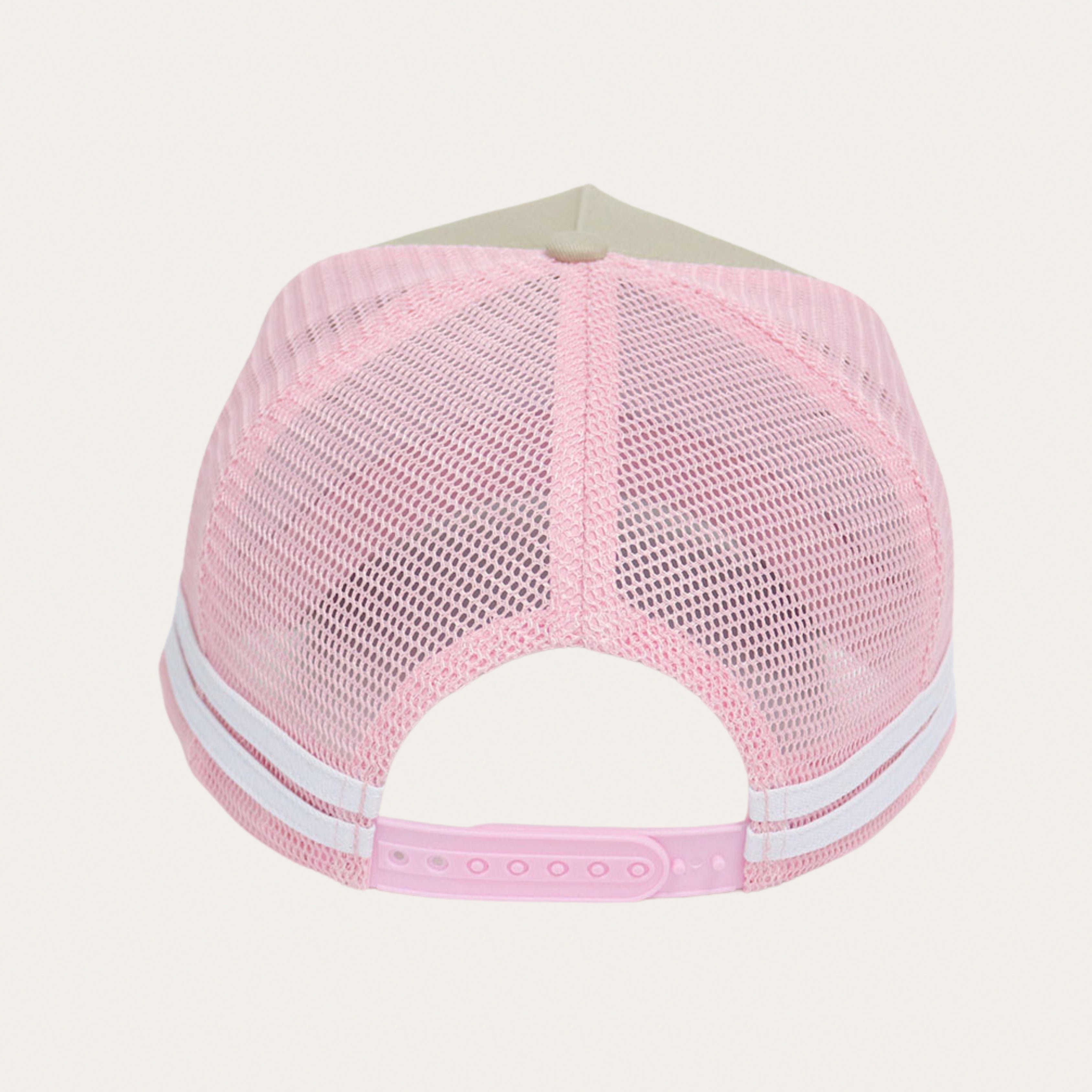 Elevate your style with our modern Tan Pink Cursive Trucker Cap! Made with high-quality materials, this cap adds a touch of sophistication to any outfit. Stand out from the crowd and make a statement with its sleek design. Perfect for any fashion-forward individual.