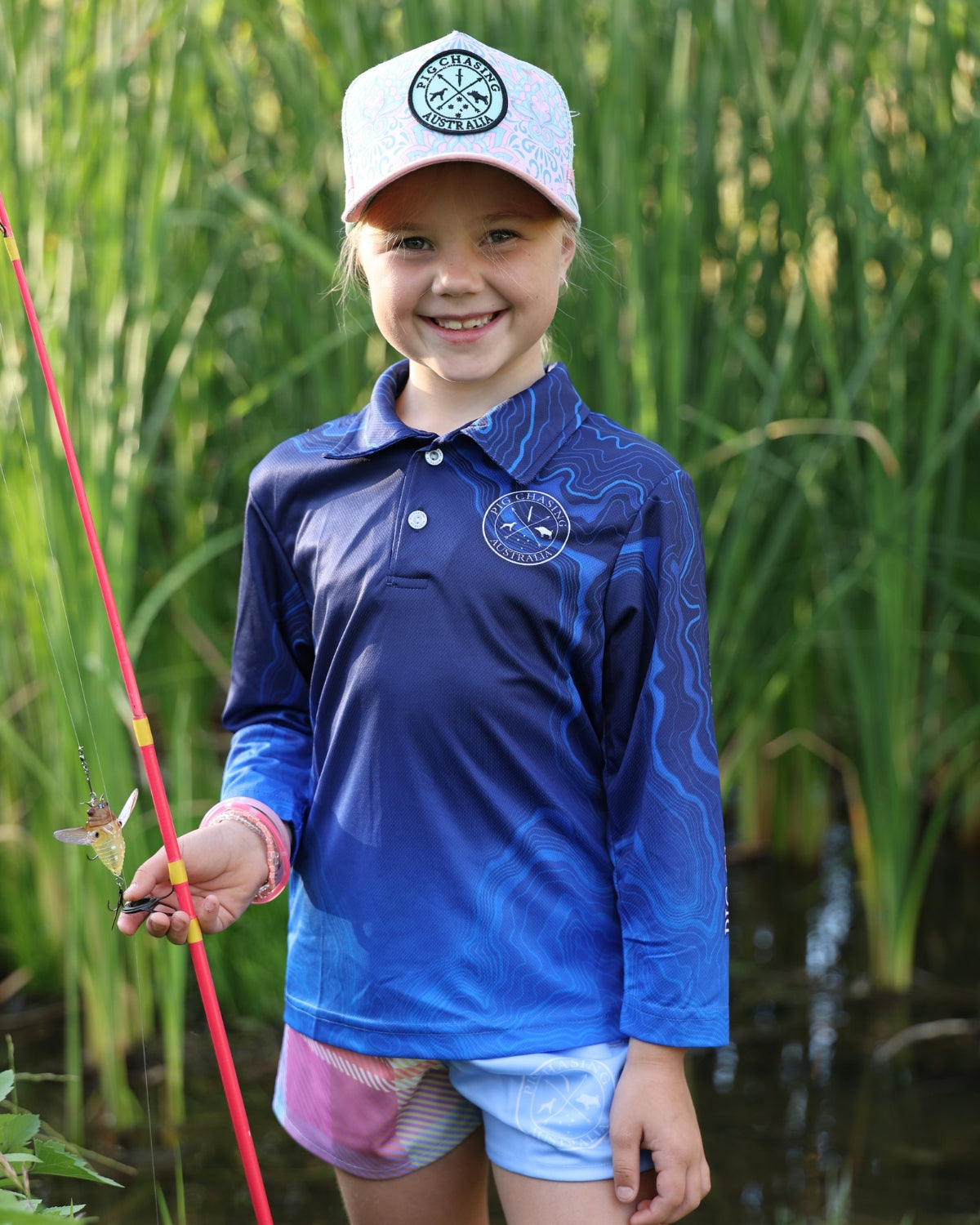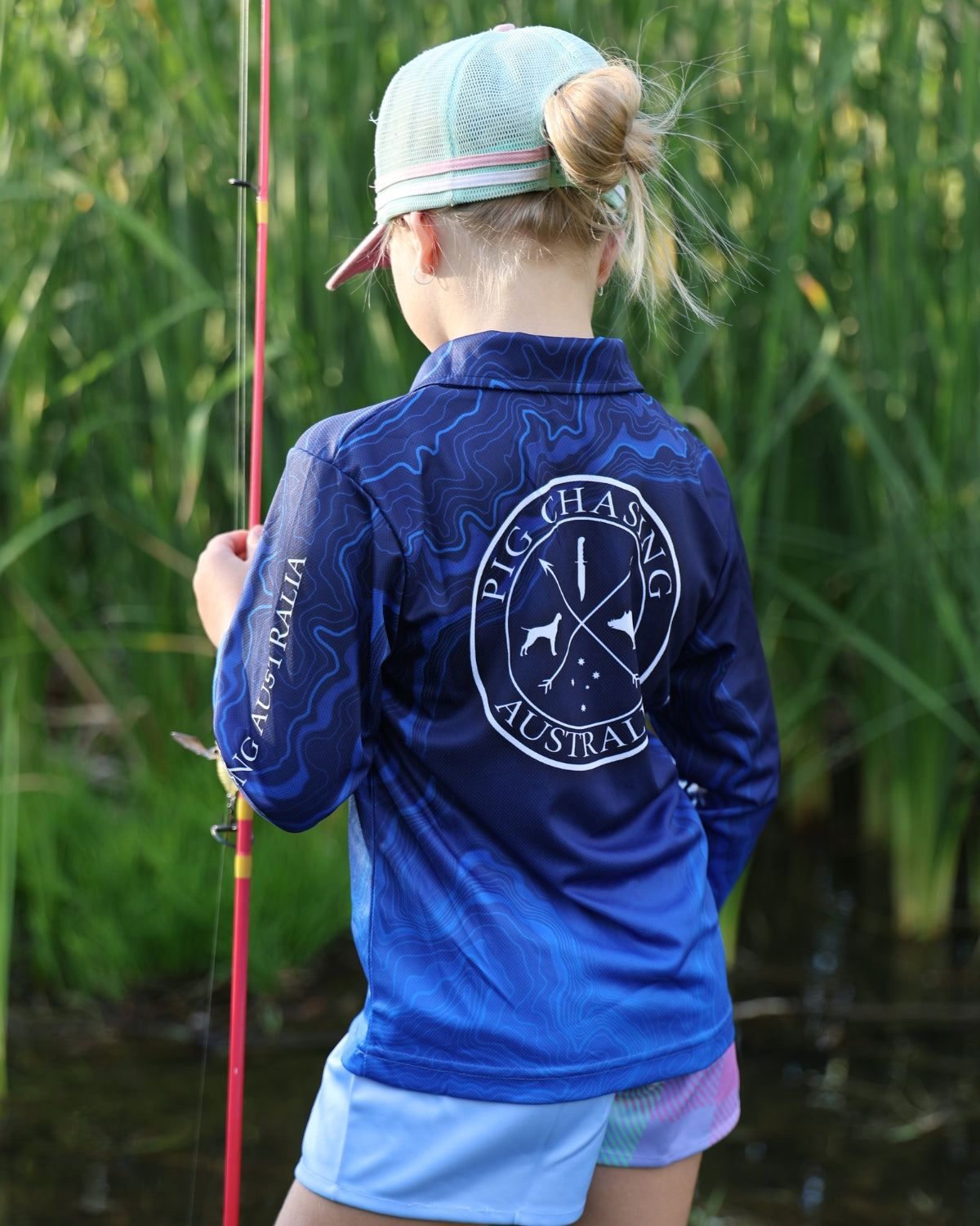 Kids Long Sleeve Fishing Shirt - Blue Contour
