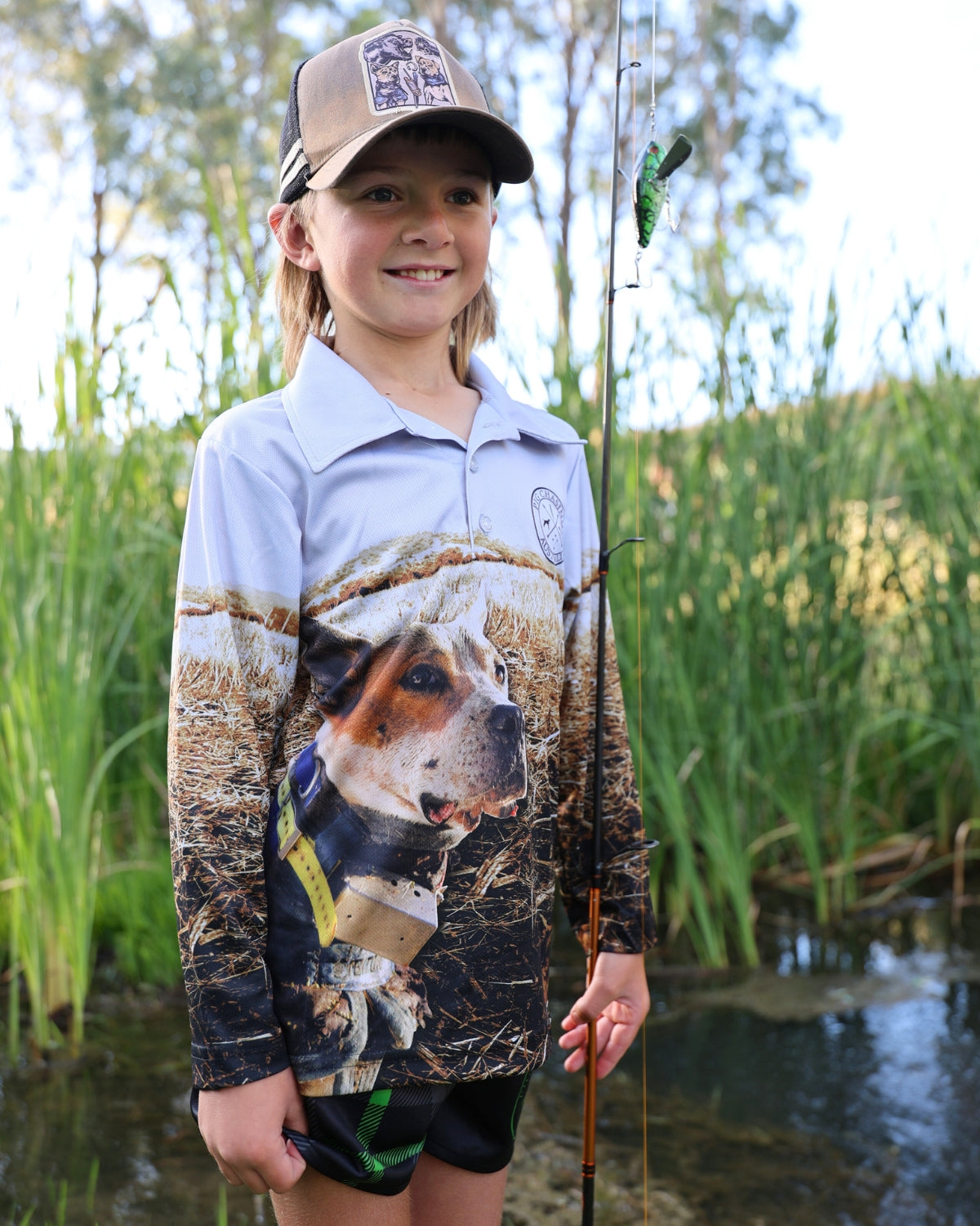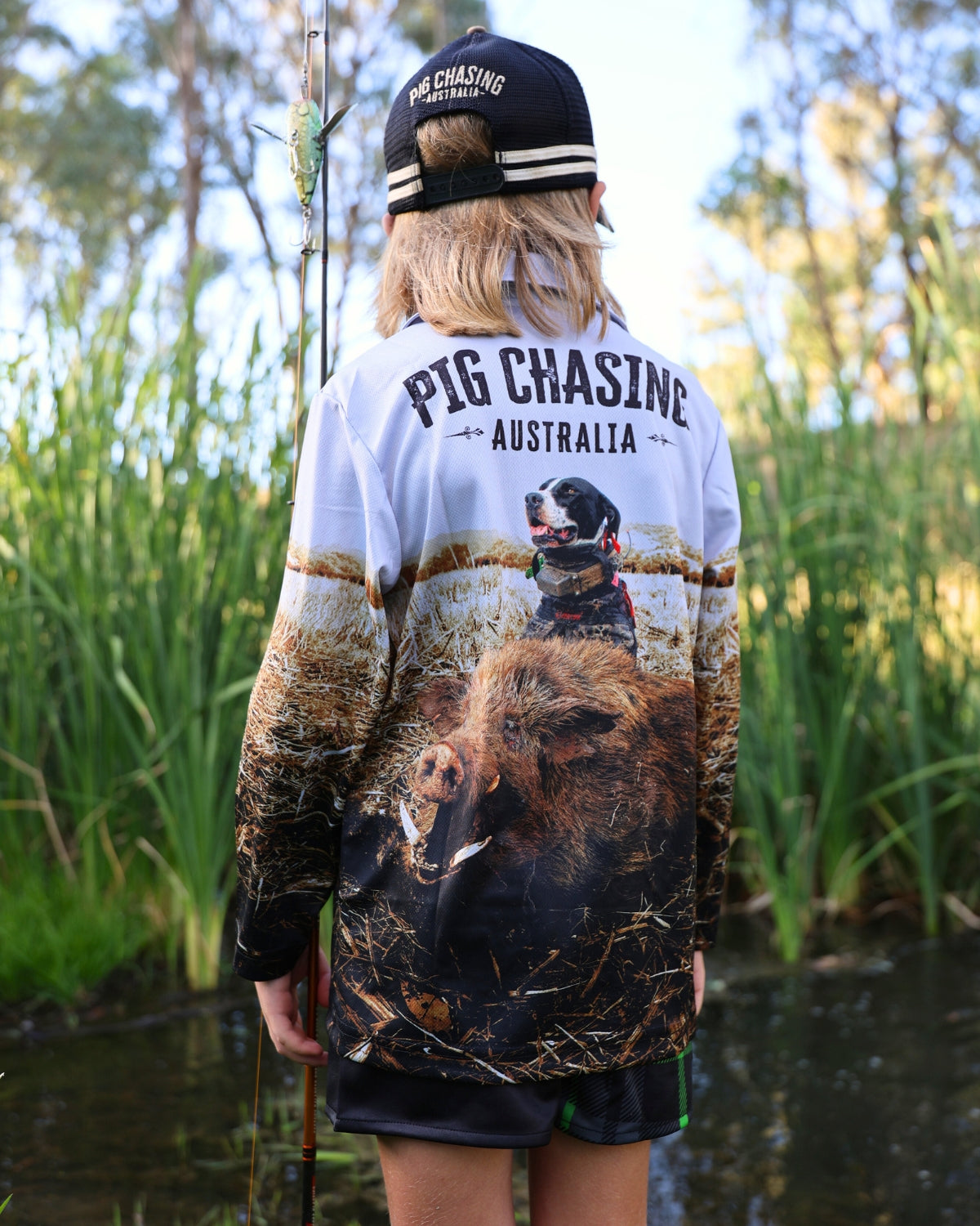 Kids Long Sleeve Fishing Shirt - Pig Dog