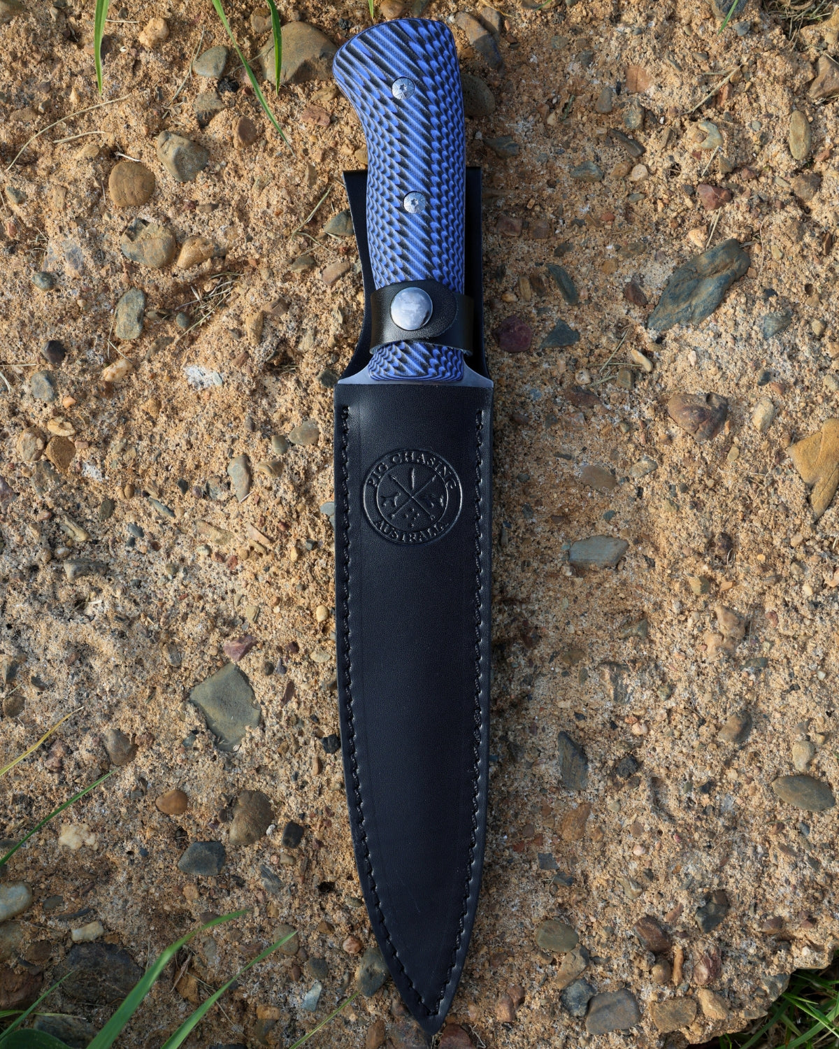 Handle feel great in the hand with the deep perforations! Blade thick and well made! More on the heavy side for hunting knife but to me that feels like quality! PCA sheath great quality fits knife beautifully and hangs nice from waist or uhf chest mount 🫡 buy it! You won't be disappointed!