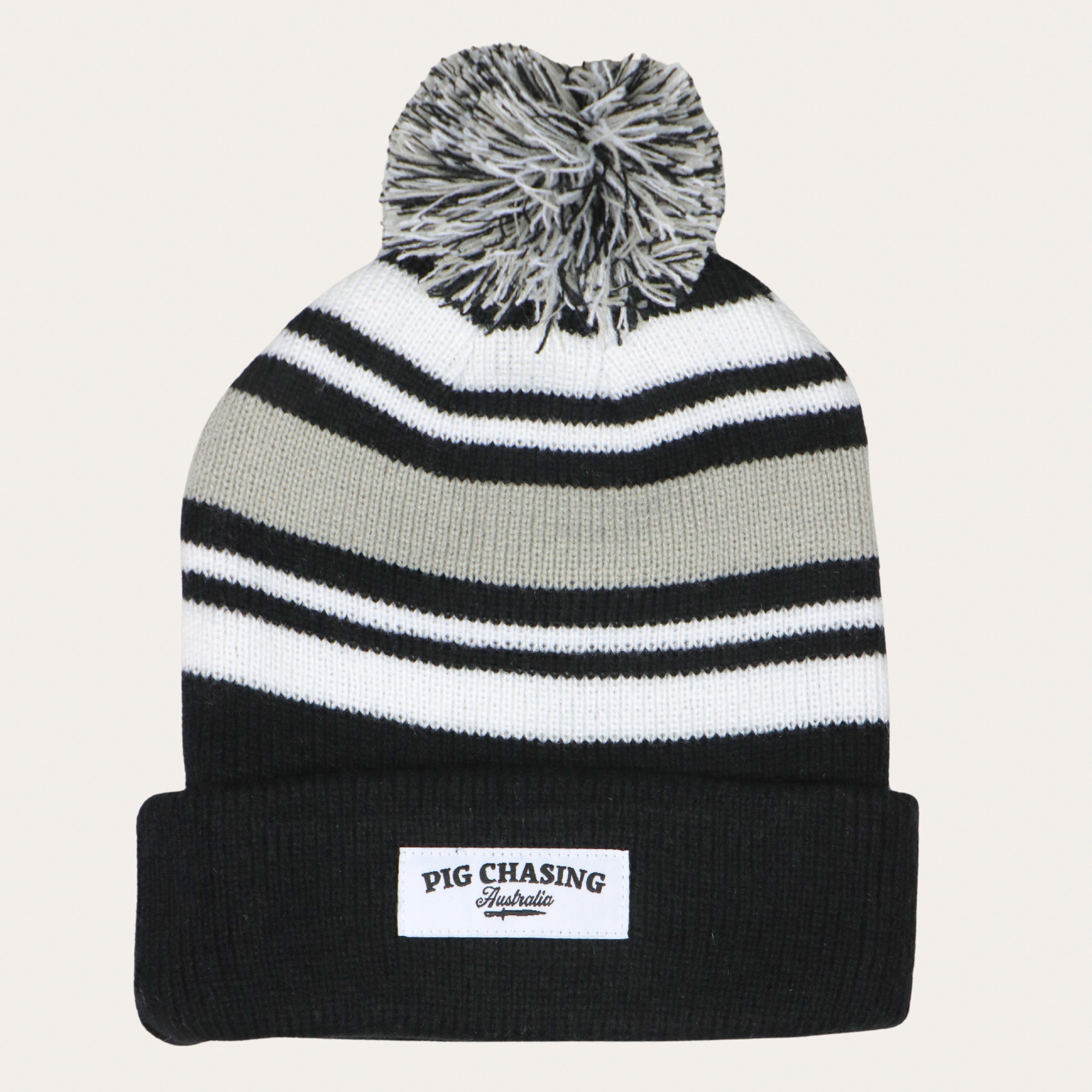 Stay stylishly cozy with our Black/White/Grey Beanie featuring our cursive logo. This beanie not only adds flair to any outfit, but also provides warmth and comfort on chilly days.