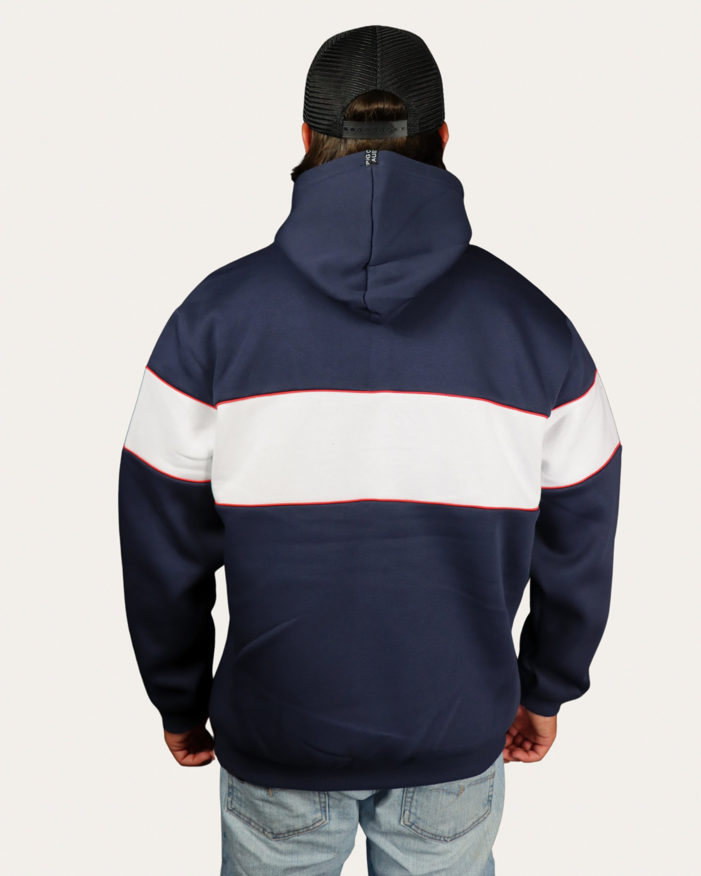 - Navy/White Pull Over Hoodie With Kangaroo Pocket