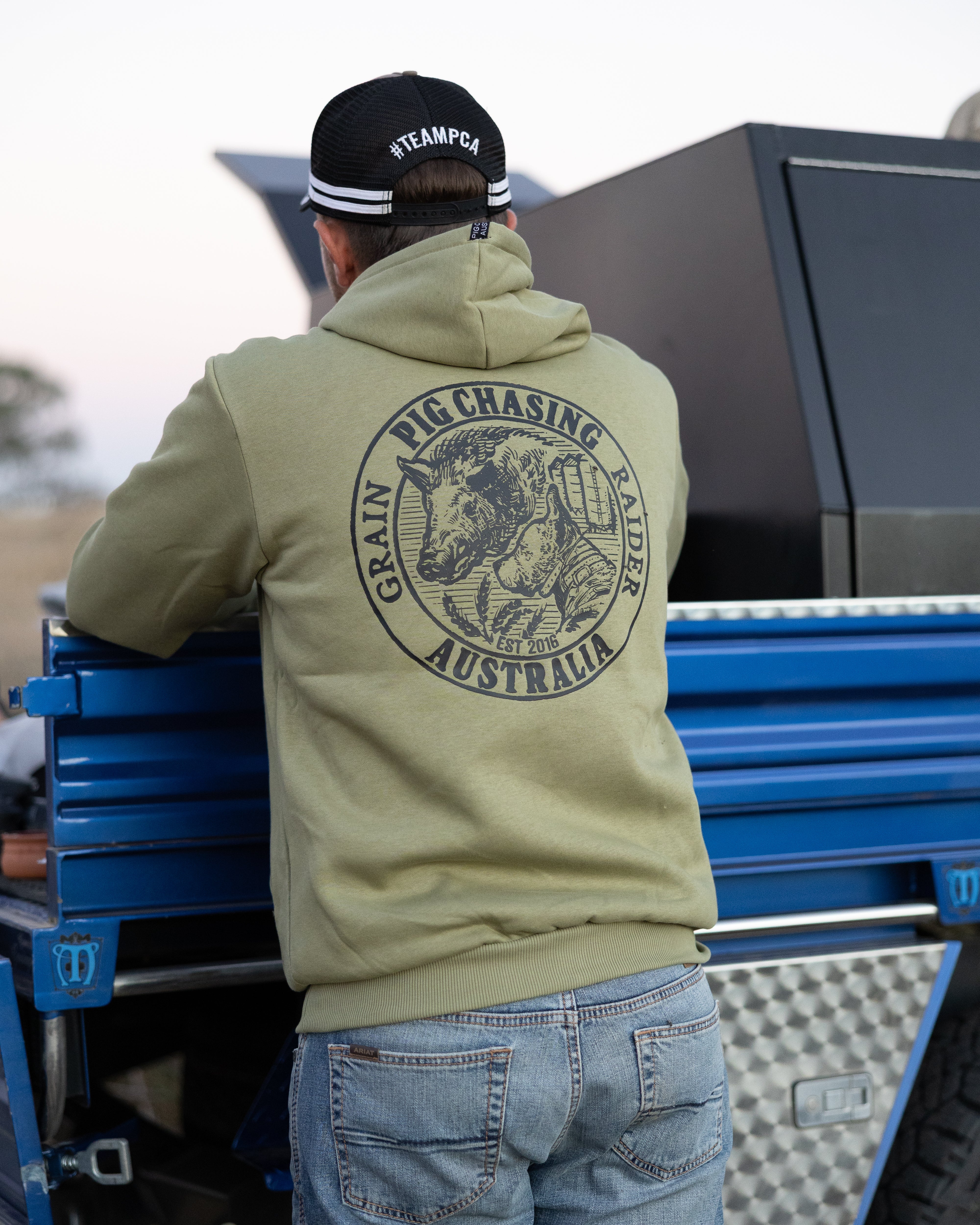 We've got your back covered for those cold days chasing pigs or simply having a night around the fire with the Grain Raider Hoodie!