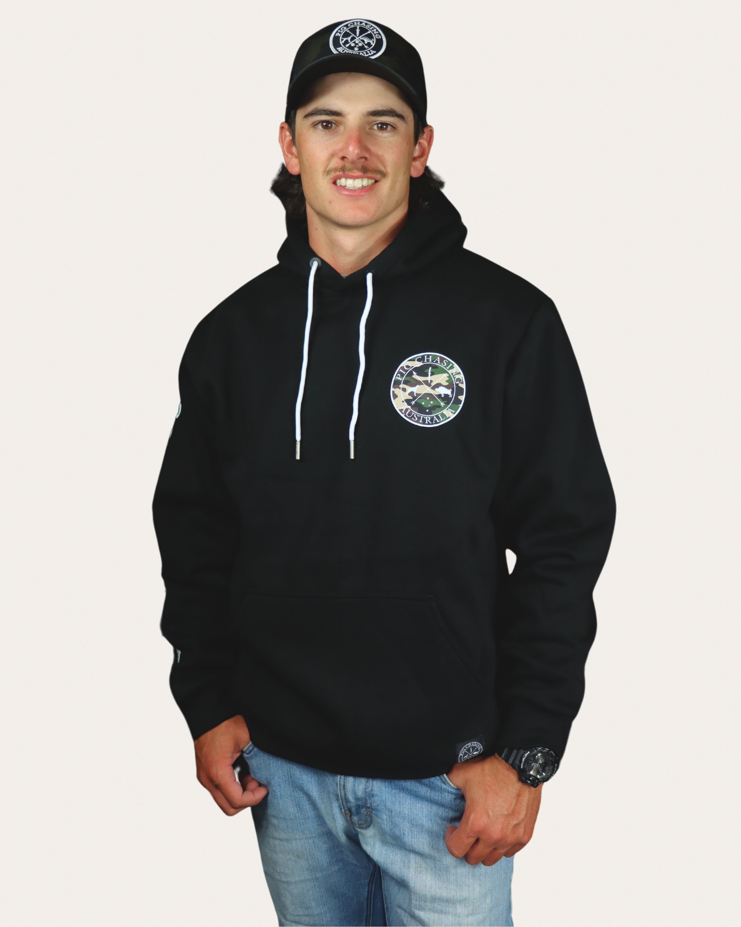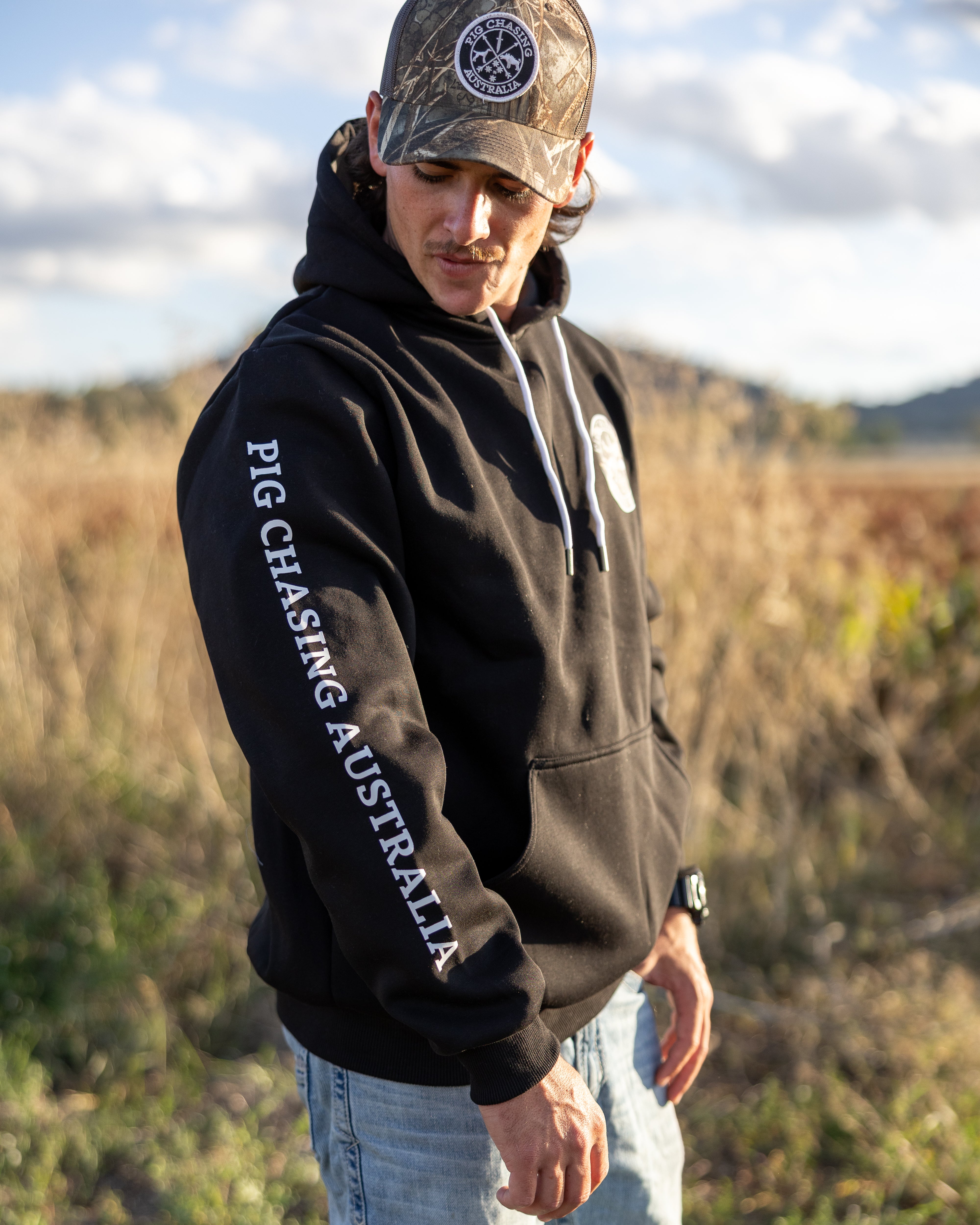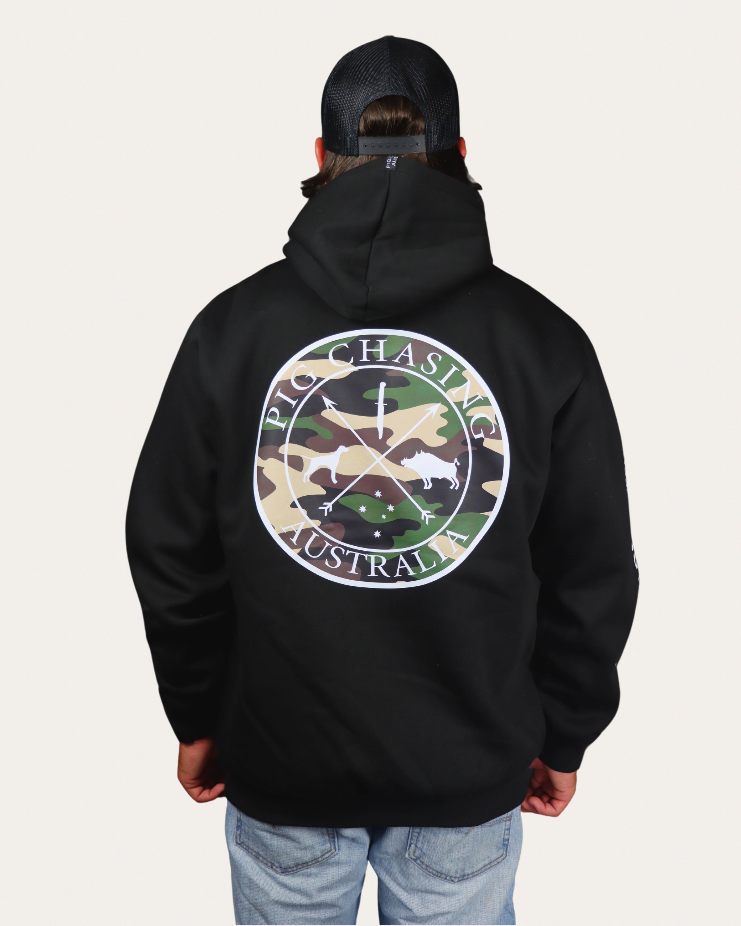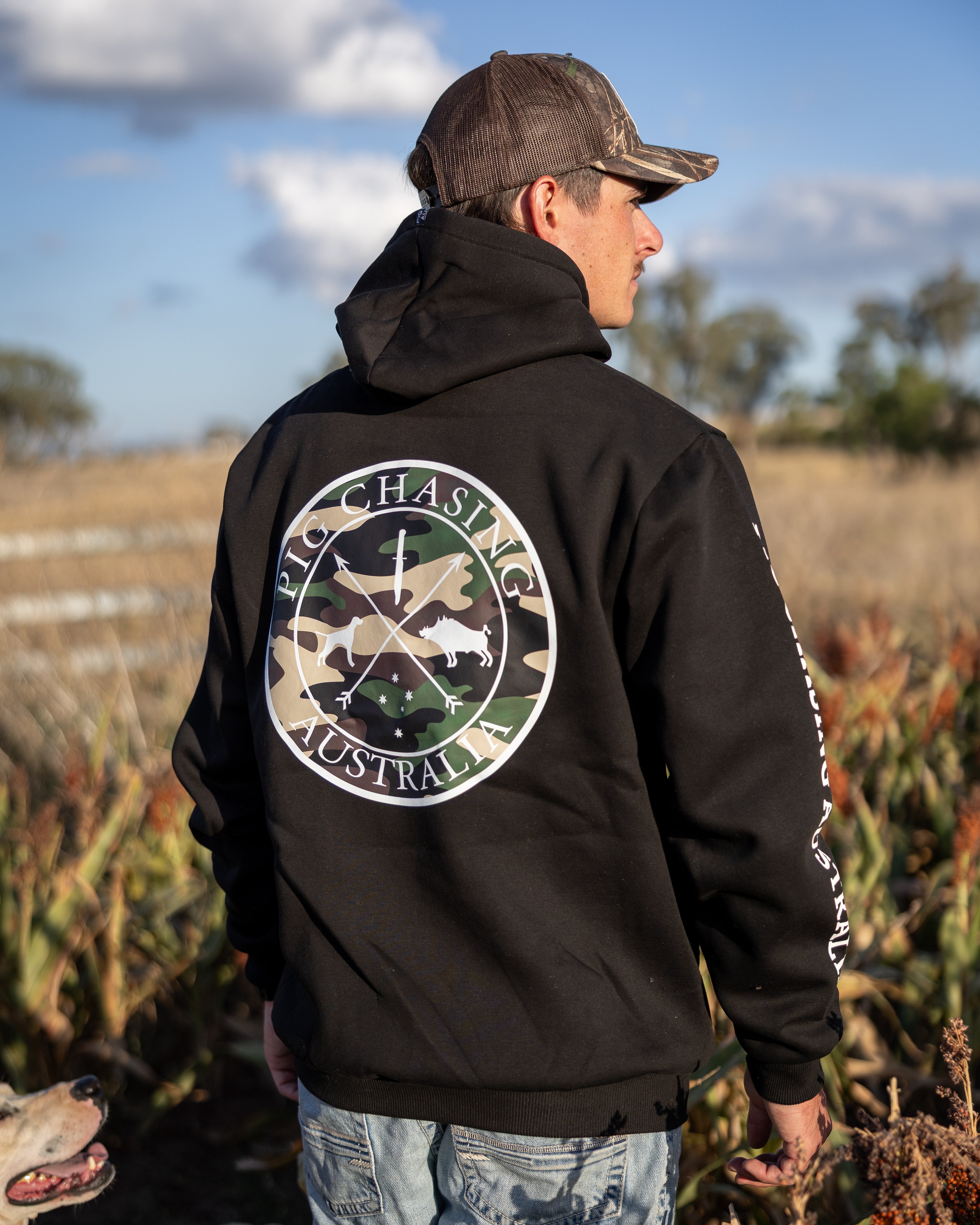 We've got your back covered for those cold days chasing pigs or simply having a night around the fire with the Camo Logo Hoodie!
