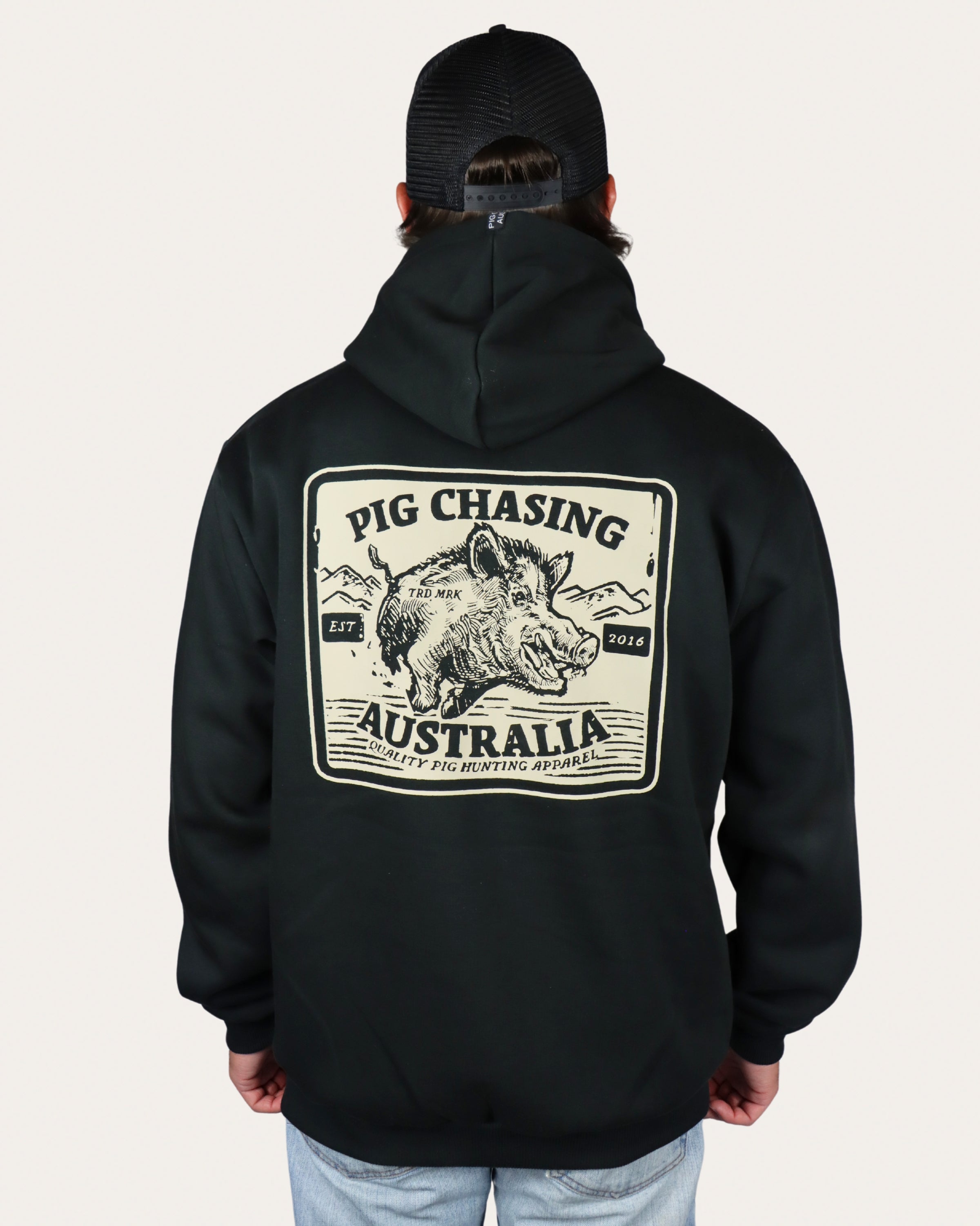 We've got your back covered for those cold days chasing pigs or simply having a night around the fire with our Raging Boar Hoodie.