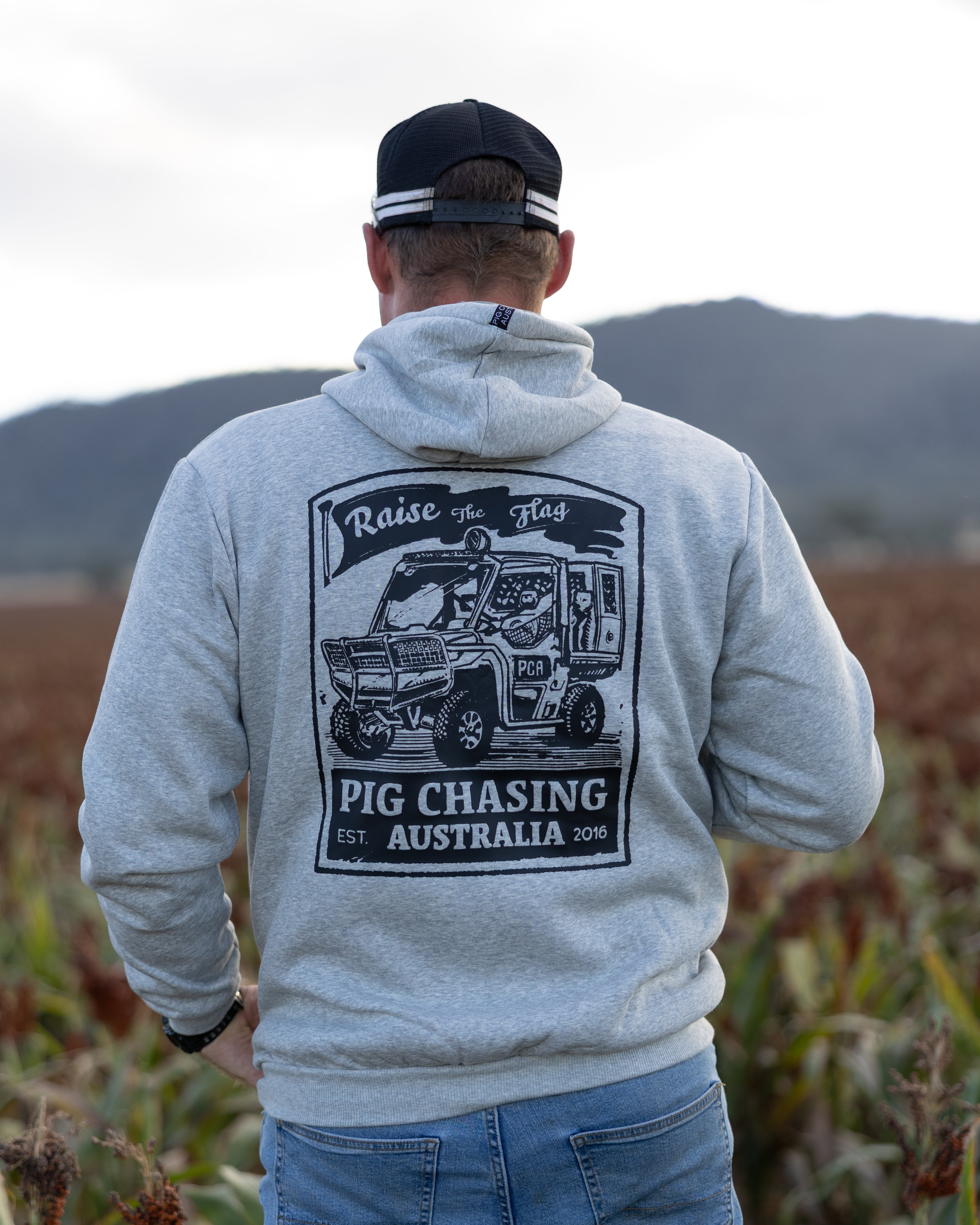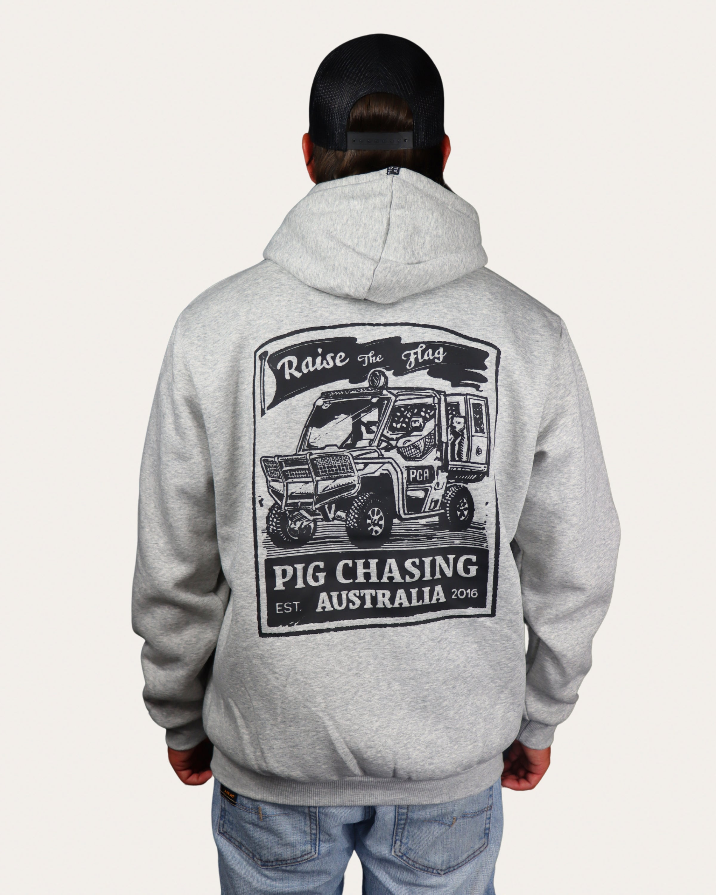 We've got your back covered for those cold days chasing pigs or simply having a night around the fire with the Raise the Flag Hoodie!