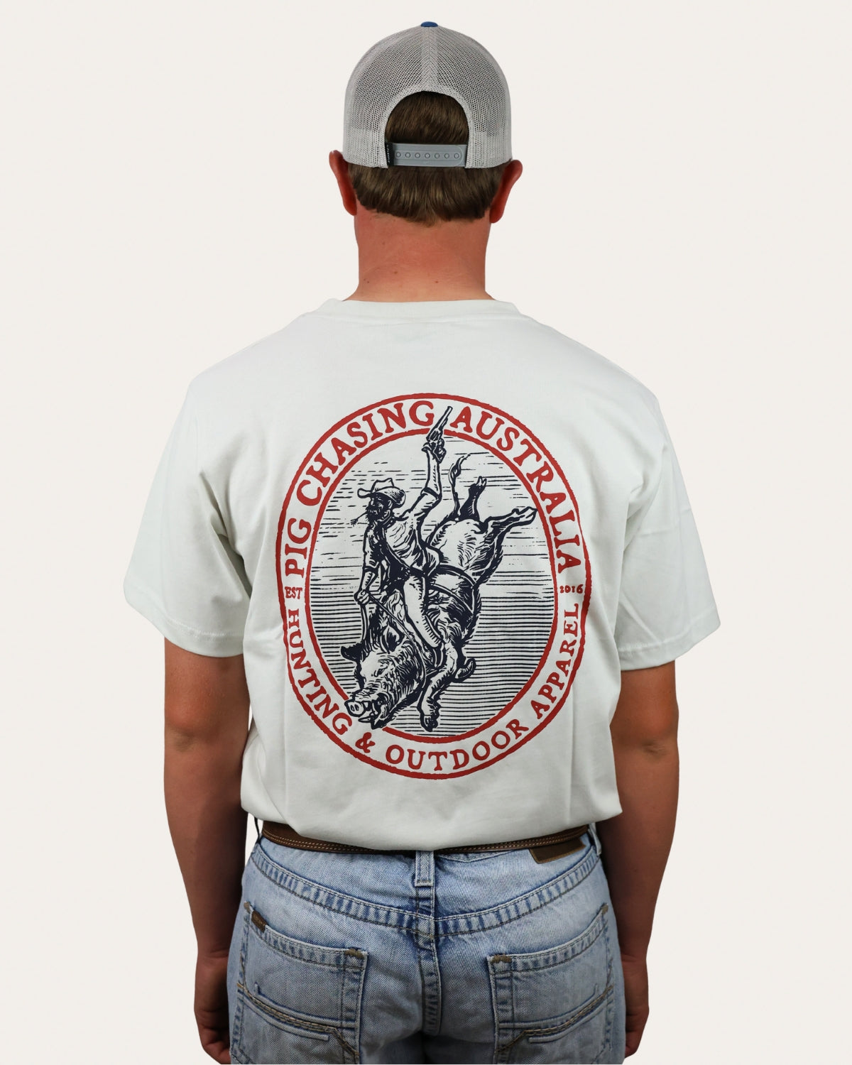 Elevate your wardrobe with the Bucking Boar T-Shirt. Made with the finest 100% combed cotton 240GSM. This mid weight shirt boasts a luxurious feel. With 28-singles and quality craftsmanship, it is a true premium product. Upgrade your style with this sophisticated and exclusive T-shirt.