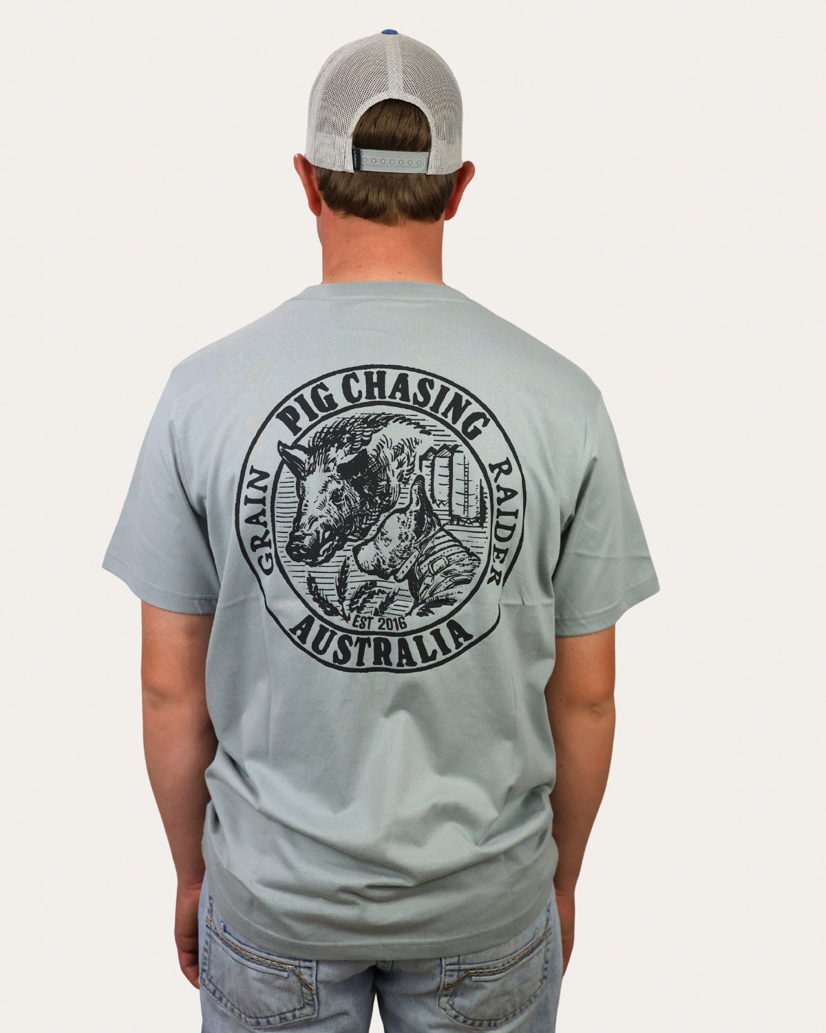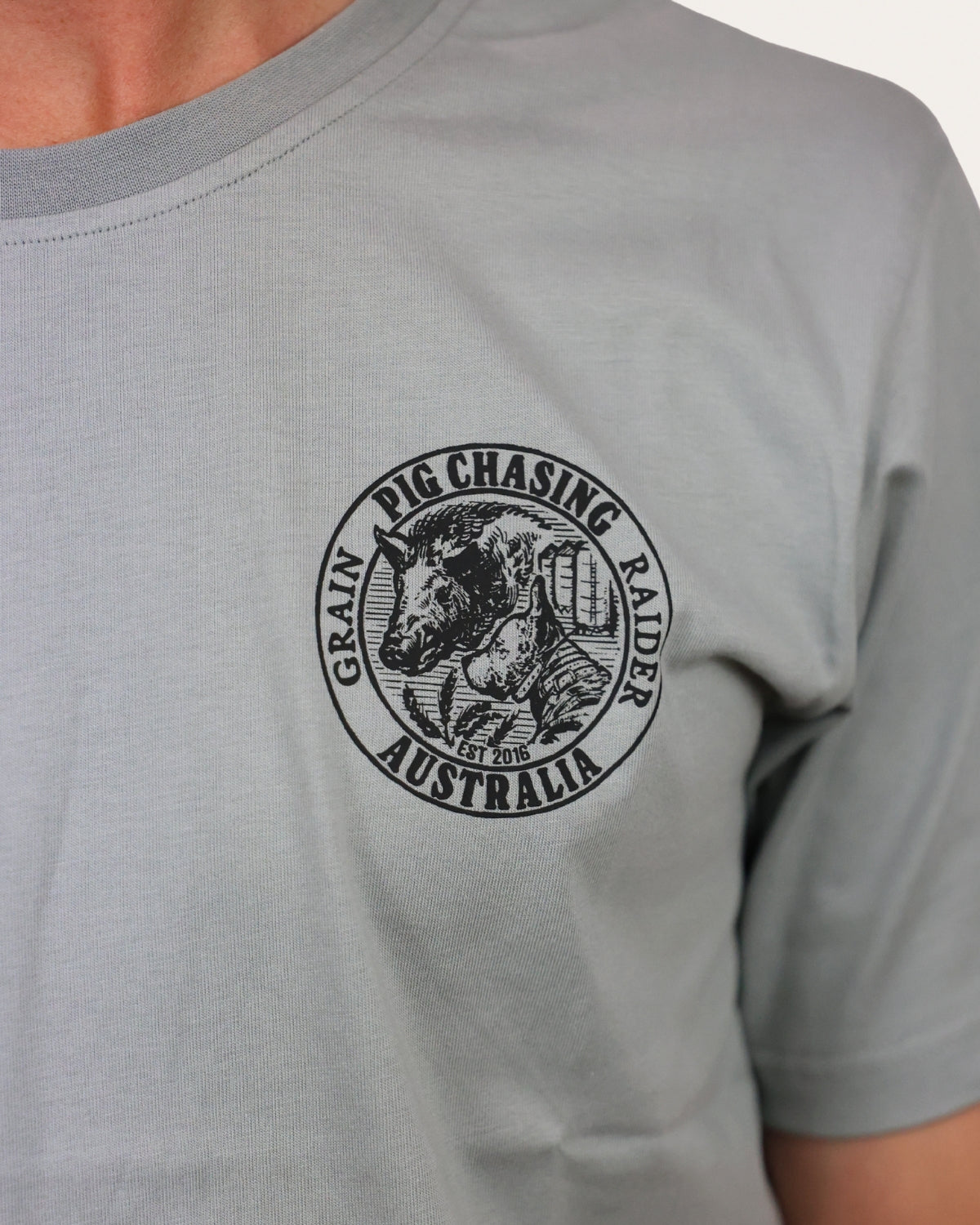 Introducing the Grain Raider T-Shirt in granite colour! Made with premium 100% combed cotton, our mid-weight shirt provides unmatched comfort and durability. With 28-singles, our shirt offers a soft touch and doesn't weigh you down. Upgrade your wardrobe with our stylish and high-quality shirt today!