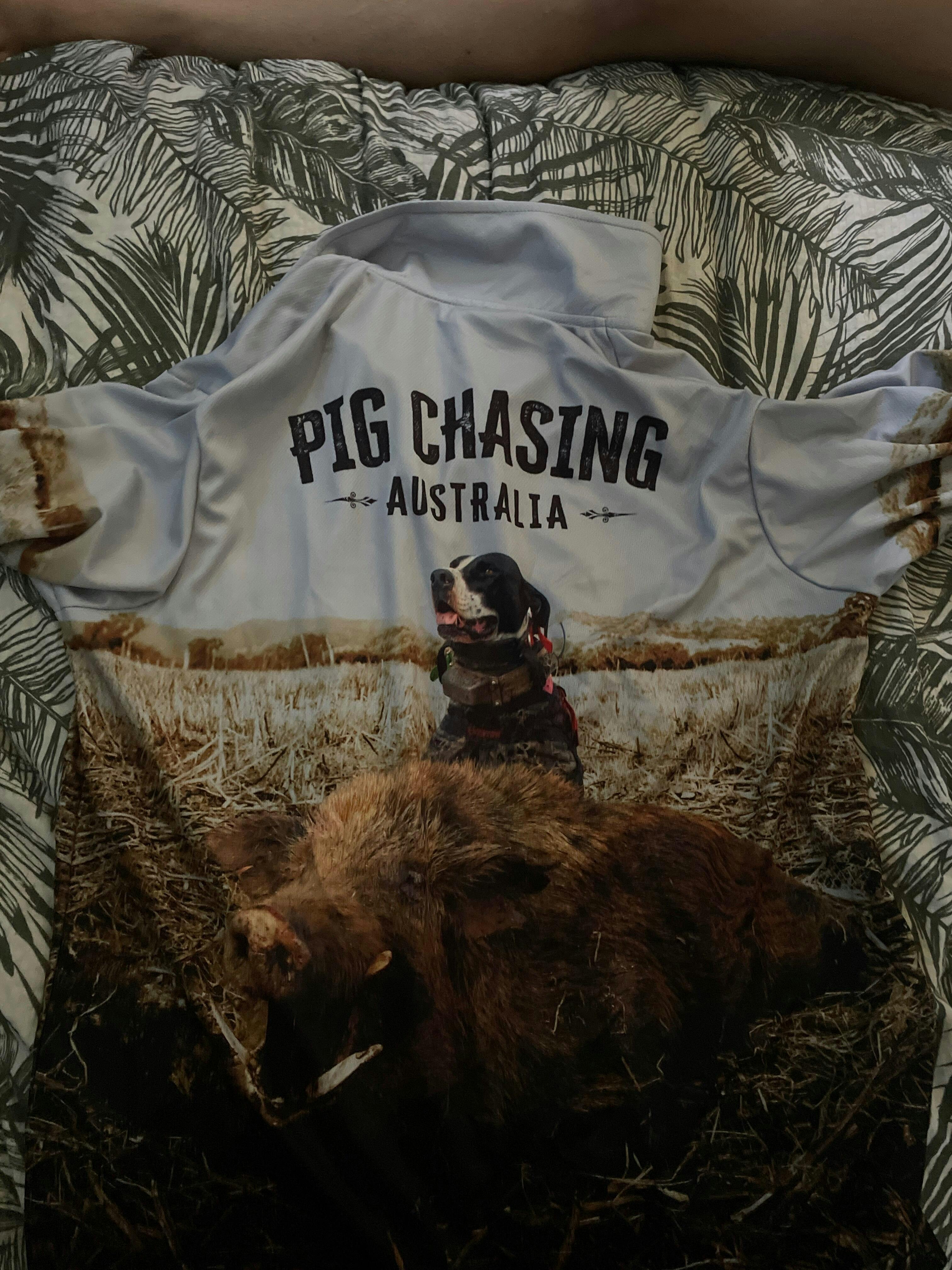 The Pig Chasing Australia Long Sleeve Fishing Shirt is the must have item for your next pigging or fishing trip. Lightweight, breathable and offering 50+ UPF max sun protection.