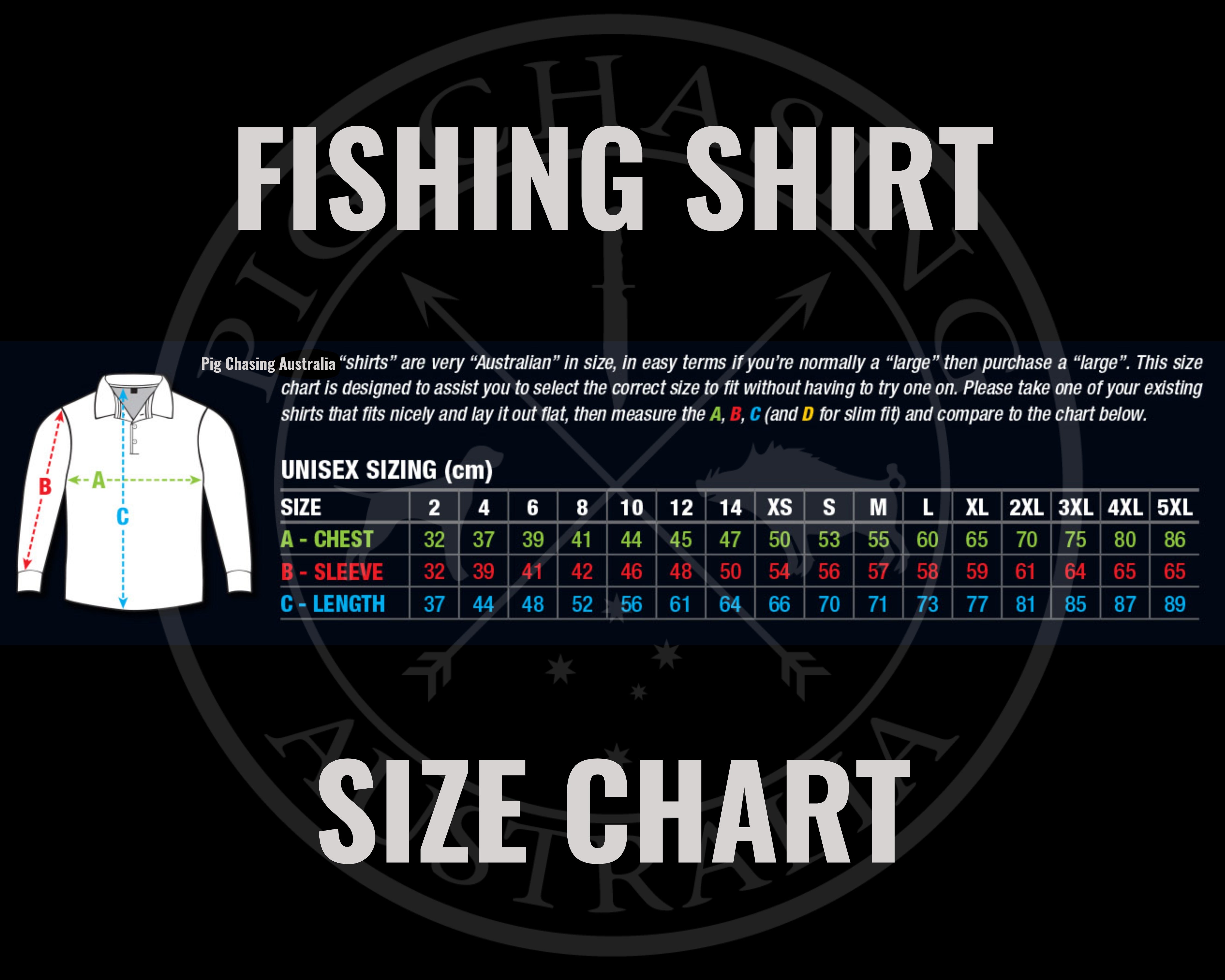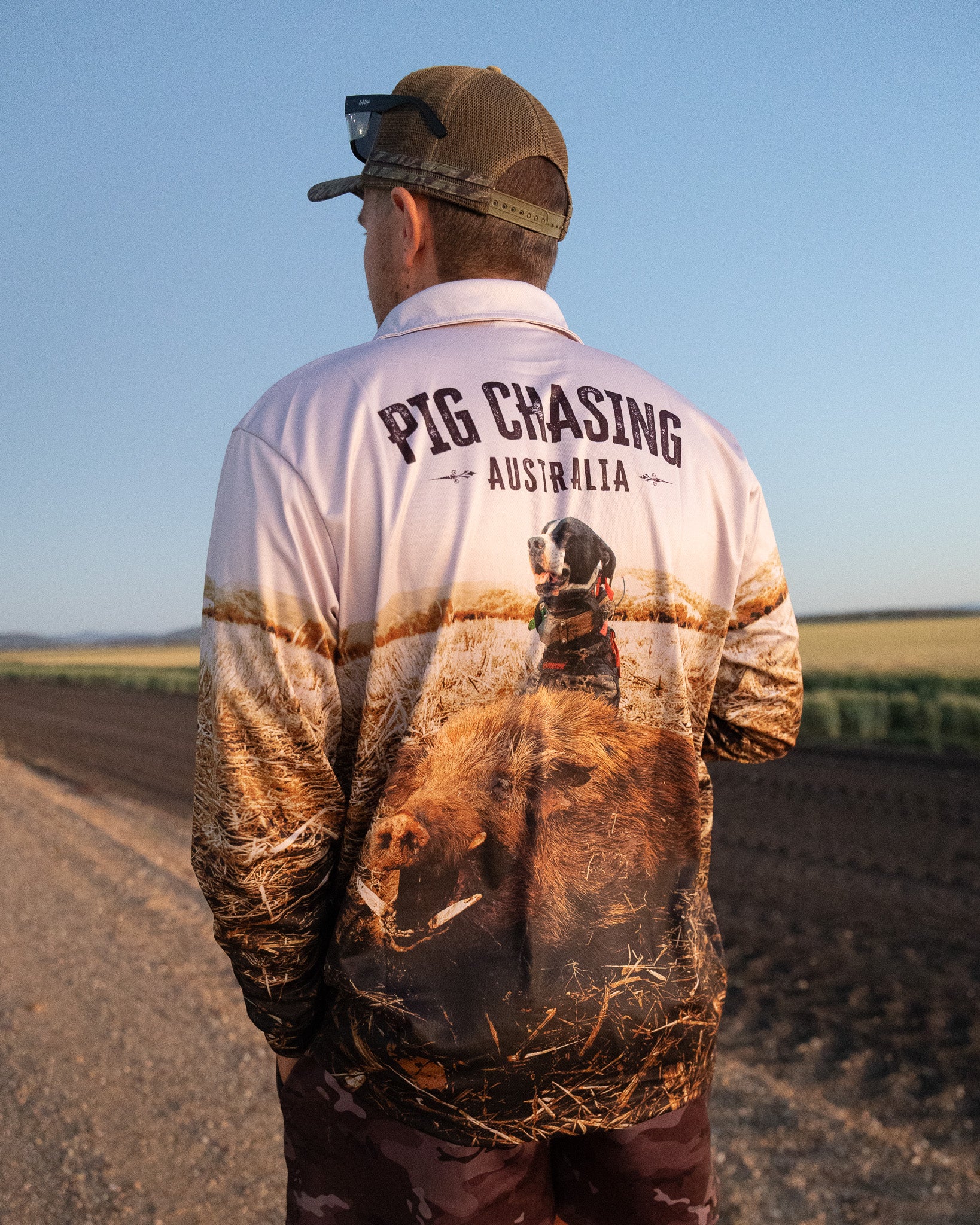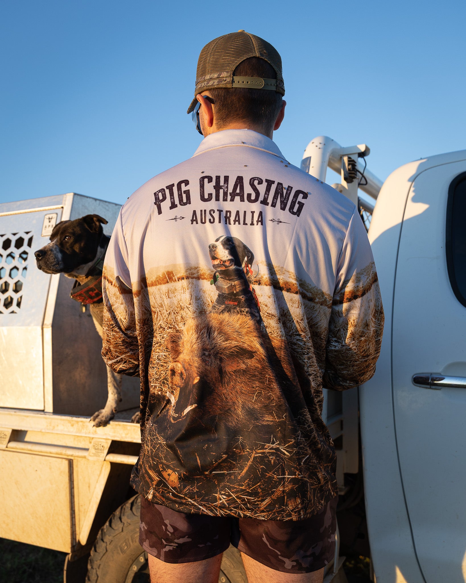 The Pig Chasing Australia Long Sleeve Fishing Shirt is the must have item for your next pigging or fishing trip. Lightweight, breathable and offering 50+ UPF max sun protection.