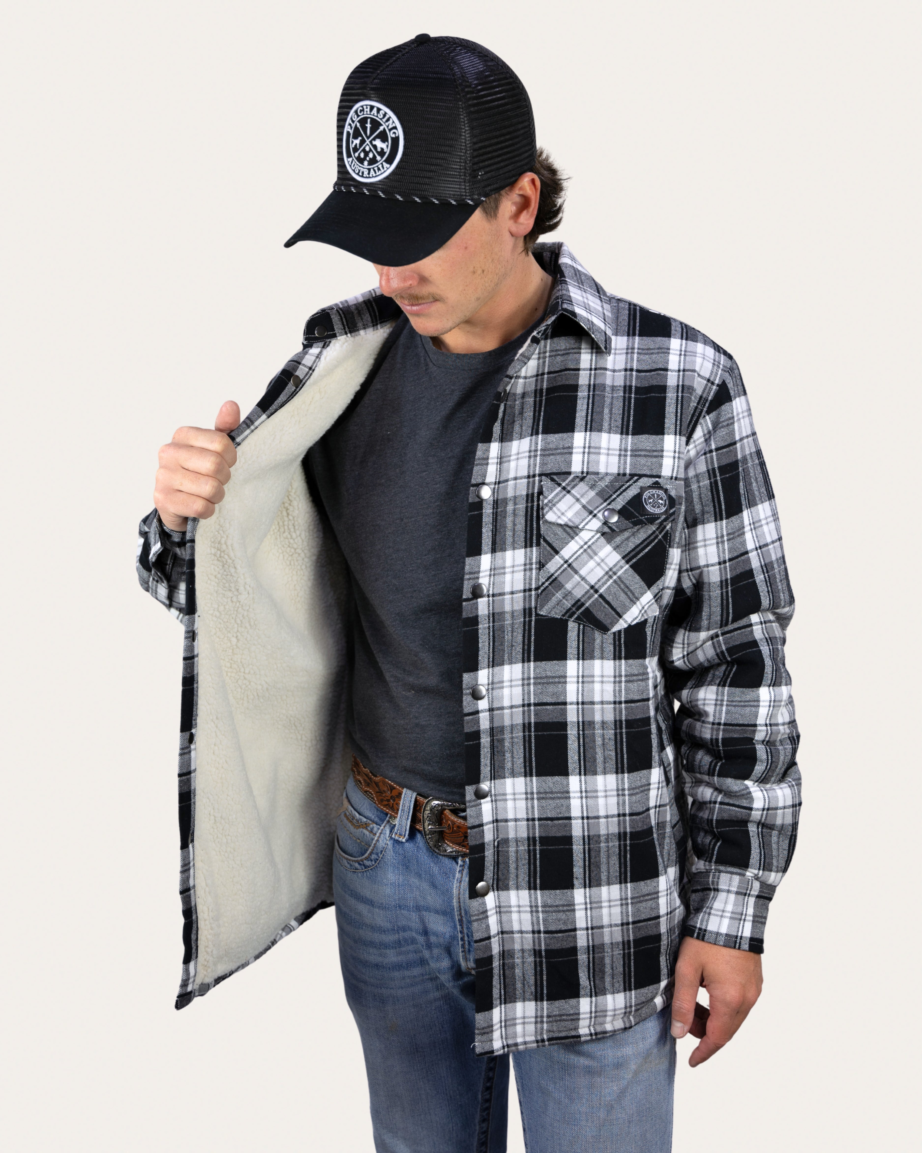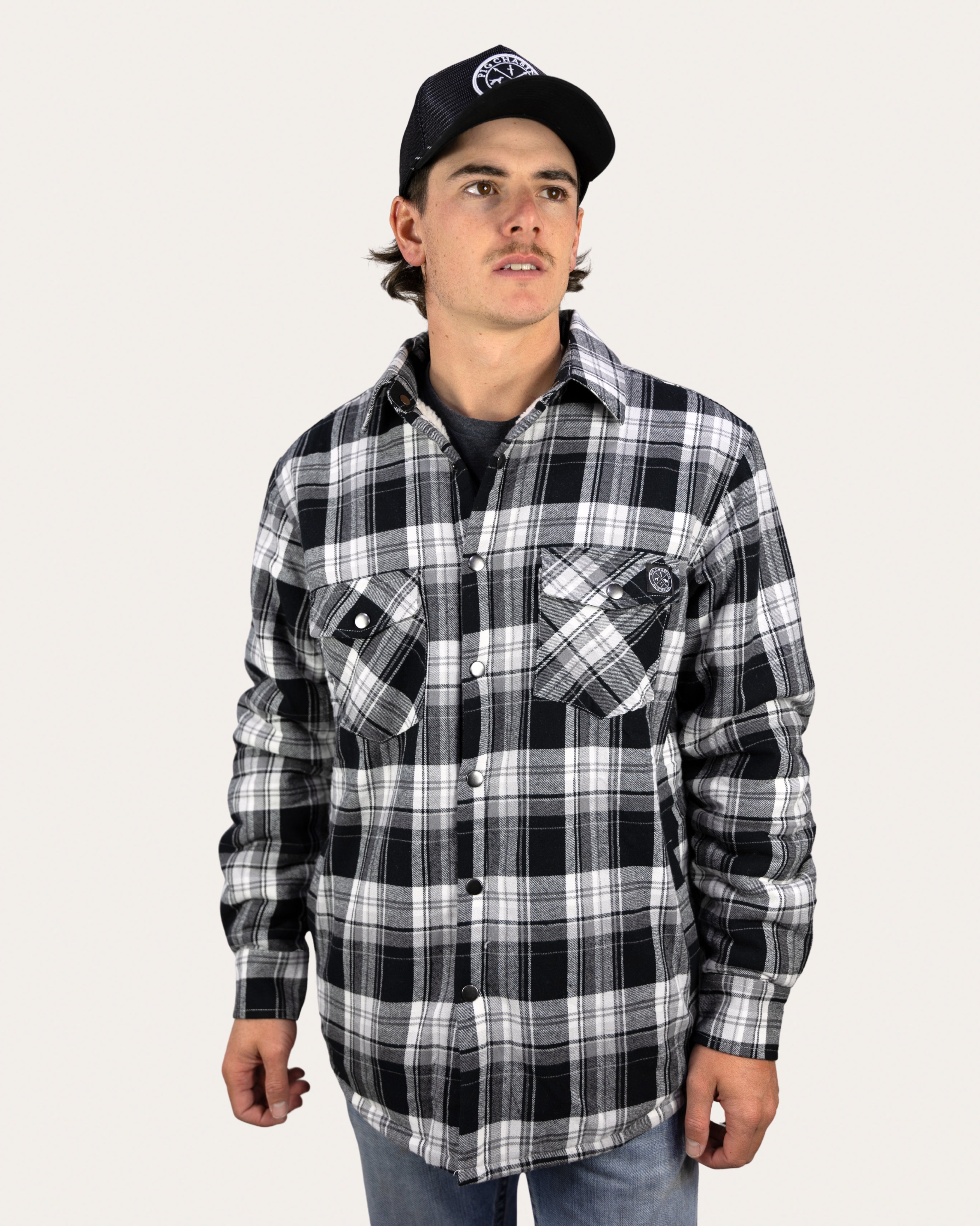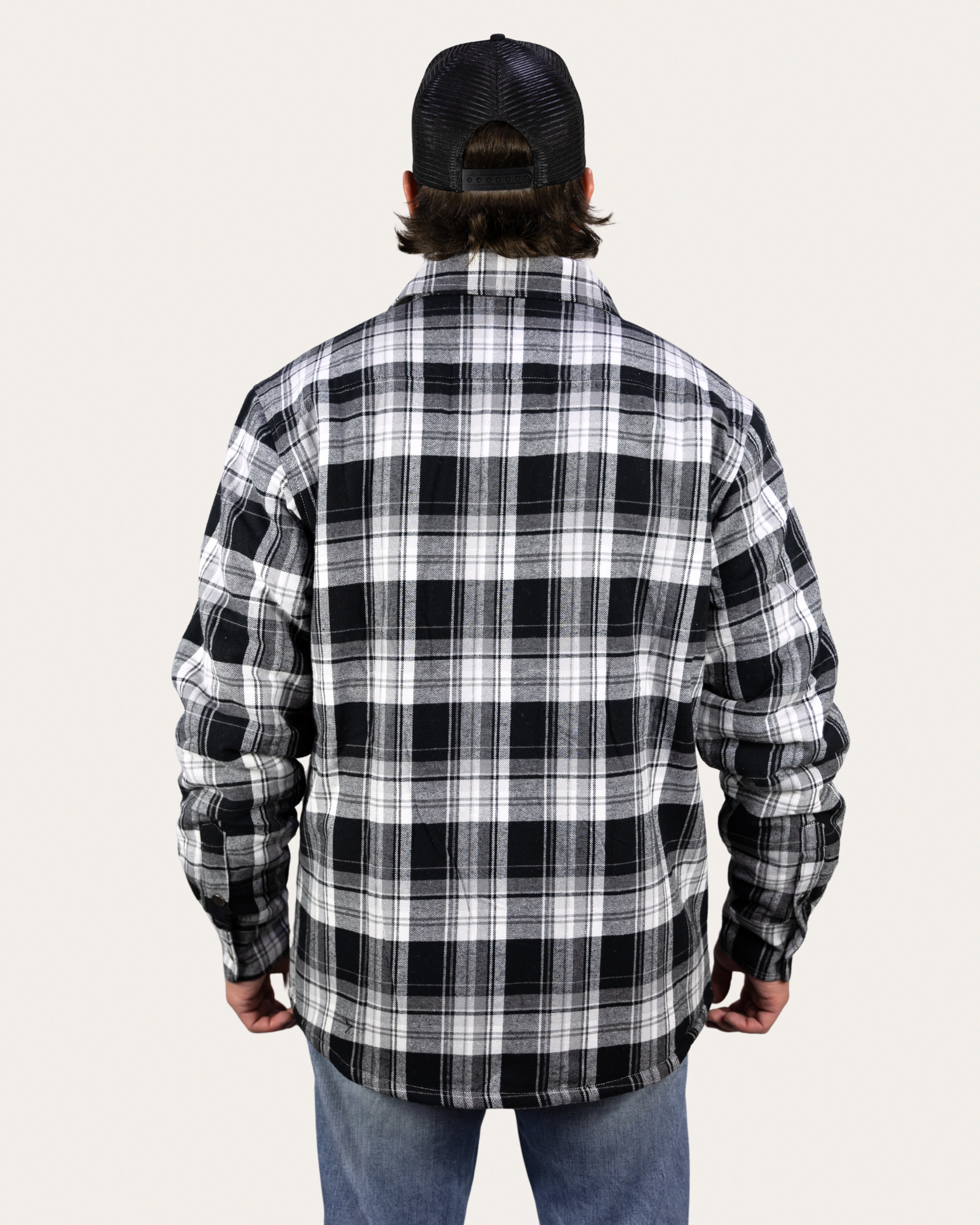 Sherpa Lined Flannel Jacket - Black/White